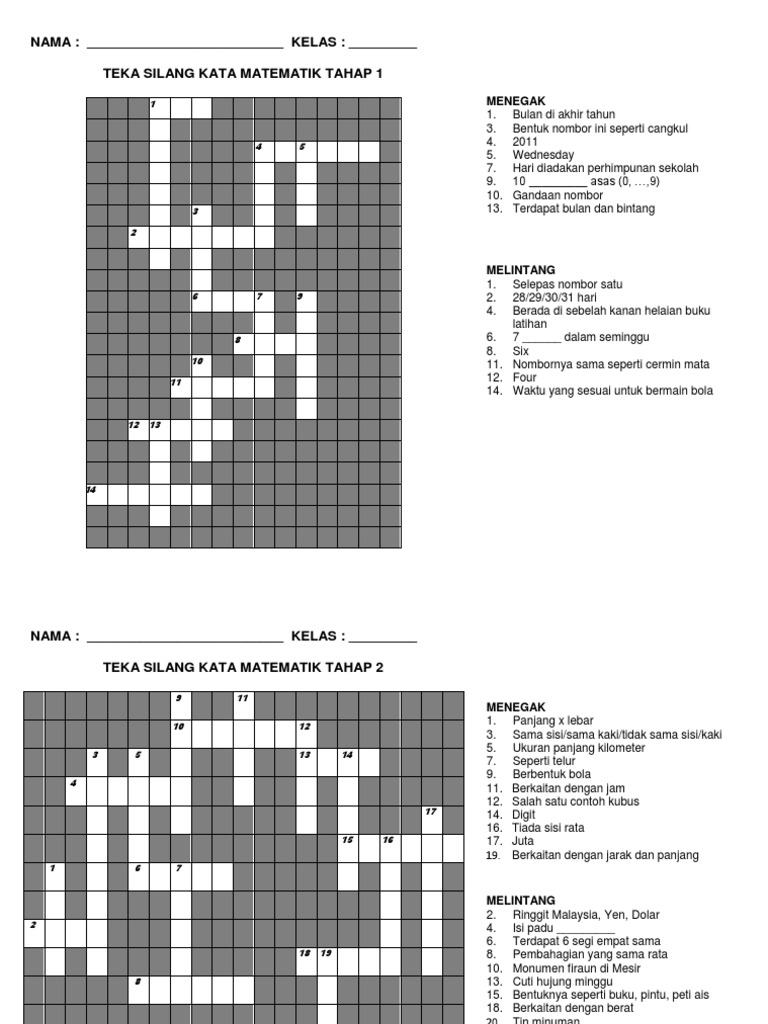 Pelbagai Teka Silang Kata Matematik Tahap 2 Yang Sangat Terhebat Untuk Para Guru Dapatkan Cikgu Ayu